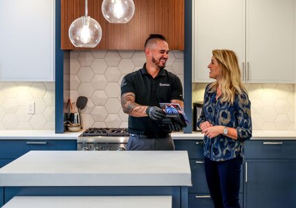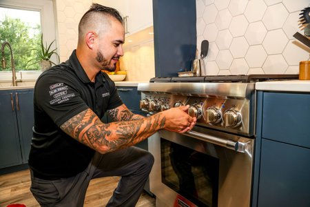 3. Walk the customer through the source of the issue, the proposed repair, and a quote for the parts and labor (based on The Original Blue Book Major Appliance Job Rate Guide, with some discretion left to the technician).4. If the customer approves the work, perform the repair. We aim to solve all issues on the first visit, though not all repairs can or will be completed then. Sometimes additional parts need to be ordered, sometimes a second opinion or set of hands is needed to solve a complex problem. All of our techs aim high with their first-call-complete rates, but they also know there isn’t an expectation of perfection. Techs also know that if they need help, they can consult their team lead or any of the manufacturer’s service resources, including their tech help lines. It may seem like every tech is on an island, but they always have a support team to turn to if they need it.
