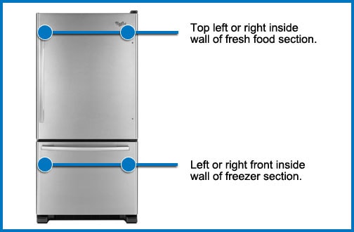 • Refrigerators / Freezers: Usually the model tag is located near the top shelf of the fresh food section on a tag on the side wall.