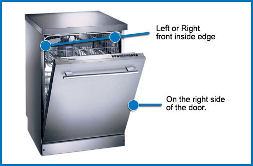 • Dishwashers: Usually the model tag is either on the tub frame where the door shuts, or sometimes directly on the side of the inner door panel.