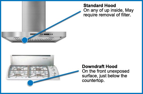 • Vent Hoods: The model tag is often located behind a grease filter on the underside of the hood.